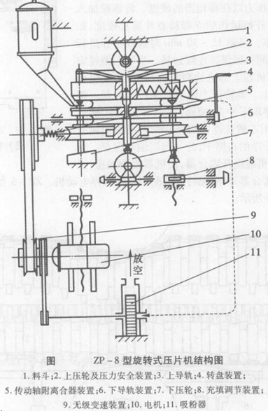 日期:2013/11/18 8:46:08 標(biāo)簽:旋轉(zhuǎn)式壓片機(jī) 原理 結(jié)構(gòu)