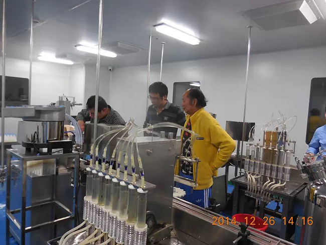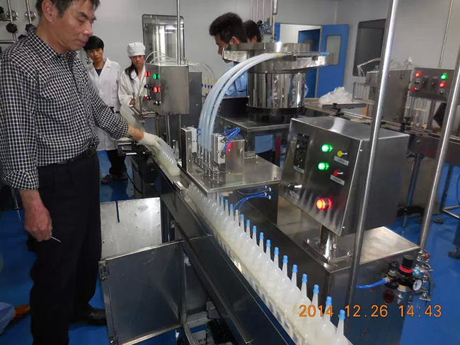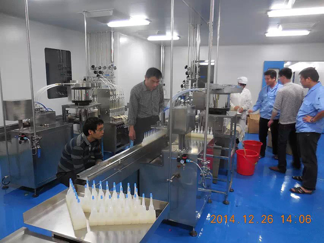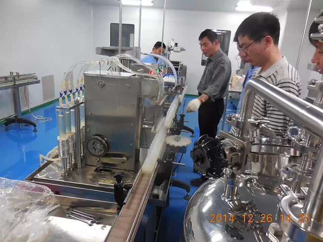 2014年12月26日,時逢毛澤東誕辰,海南皇隆制葯股份有限公司,現場試機驗收我廠生產的2條甲硝噻灌裝壓蓋生產線.受到公司董事長陳益智先生,常務副總何晶先生,設備部陳風崗先生熱情接待. 該生產線為直線式消泡灌裝壓蓋,為國內研發制造. 祝海南皇隆制葯股份有限公司生意興隆!