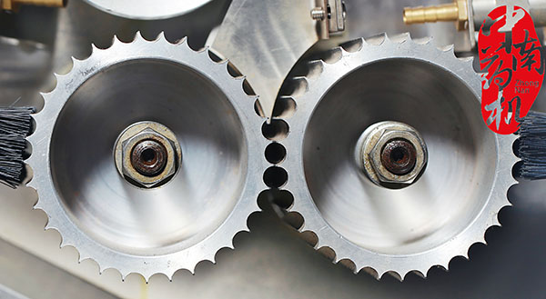 第三、制丸機通過翻版翻轉擠壓,在推進器的作用下,藥條有側面料嘴擠出,當藥條達到一定長度時,自動切刀切段,再由分配器以每秒一次的速度將藥條送入搓滾;通過任意調節制條速度和撥條速度控制制藥條長短,操作簡單方便。