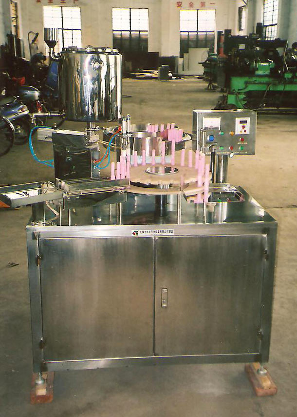 QGG型全自動膏劑灌裝機,是專用于目前國內外新流行的婦科、肛腸科類專用藥劑、給藥器、注膏器或推射器及各類桿型特制器具的自動灌裝封蓋設備。本機同時適用于一次性注射器、一次性注藥器、點膠器等桿型器具。可自動灌裝液體、膏體、油膠、油脂、樹脂、環氧膠等物料。本機具有自動上管、自動定位計量灌裝、自動上帽、自動上蓋、自動壓蓋等功能。適用于制藥企業、醫院、精細化工企業、膠粘劑企業。在雙支注膏器內,可同時灌裝兩種不同的物料,如AB膠的甲乙兩支管具。本廠同時生產BGG型半自動膏劑灌裝機,除不能自動上管、蓋帽,其他性能和QGG型全自動膏劑灌裝機相同,但BGG型半自動膏劑灌裝機的特點,是可適用于不同桿徑和長度的藥具,所以很受多品種小批量生產廠家歡迎。