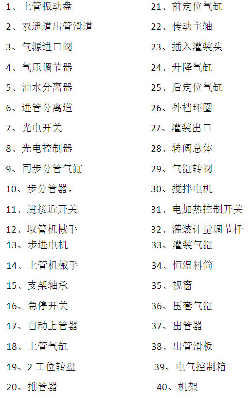QGG型全自動膏劑灌裝機部件名稱