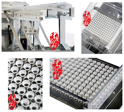 JCT型膠囊充填機,吸收了全自動機器優點,并盡量減少一些復雜機構,對于成本較大而效果不明顯的地方,改為手動。本機價格僅為全自動的10-20分之一。更重要的是,充填速度較快,尺寸差異較大的普通模制膠囊殼也能全部使用。本機將裝粉膠囊殼整理、膠囊帽蓋整理、膠囊套裝合為一體,緊湊方便。