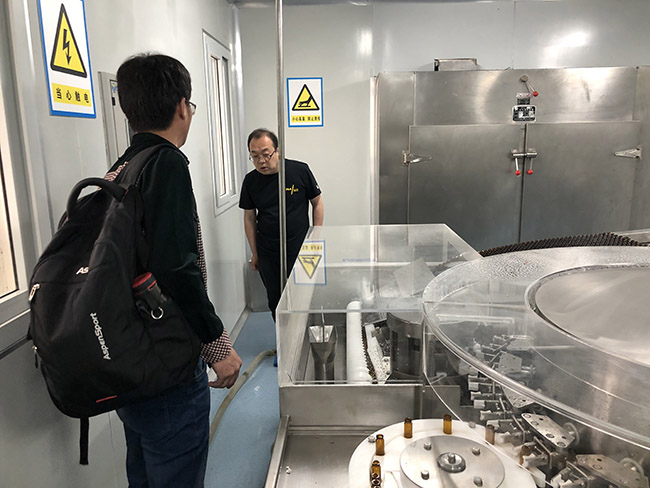然后機械手再次翻轉(zhuǎn)180度使瓶口向上,并送至同步帶出瓶撥塊上,出瓶撥輪將瓶子逐個推出,瓶子進入烘箱或出瓶盤上。